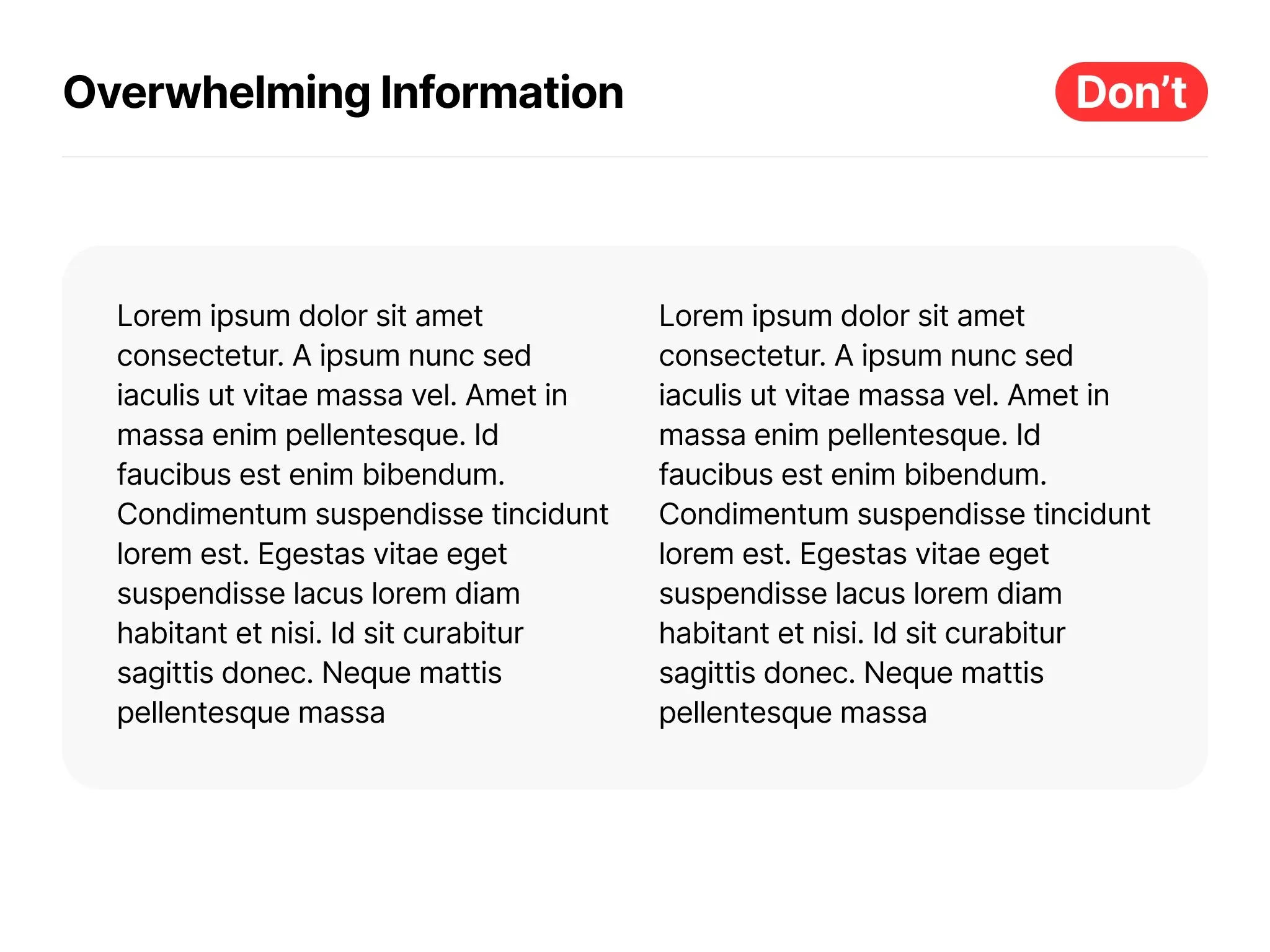 Mal ganz ehrlich: Wer will schon eine Seite lesen, auf der zu viel Text steht? Richtig, niemand. Ertränke deine Besucher nicht in einem Meer von Daten.