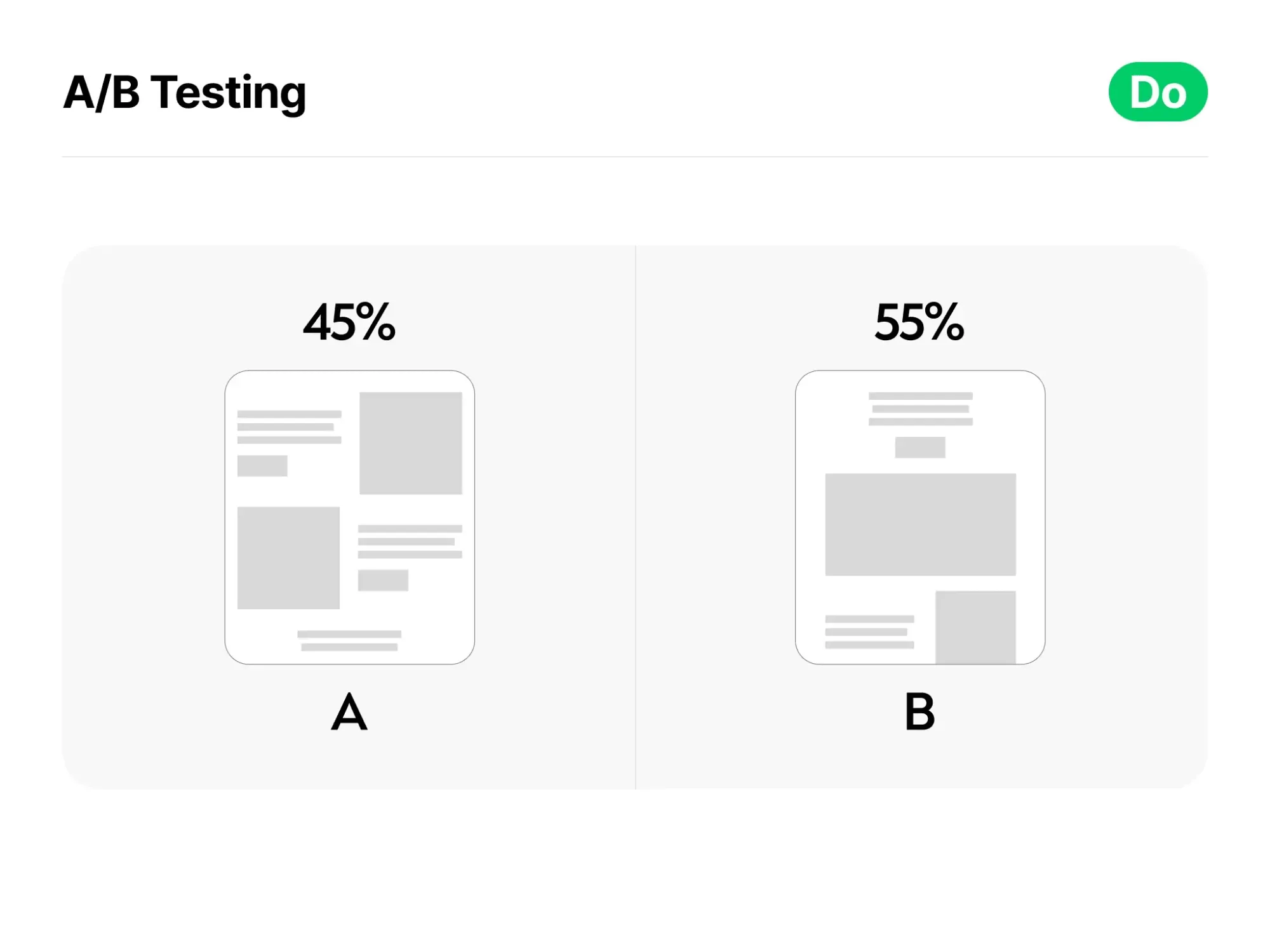 Nutze die Macht der datengestützten Entscheidungsfindung. Führe A/B-Tests mit verschiedenen Elementen deiner Landing Page durch - Überschriften, Bilder, CTA-Buttons - um herauszufinden, was bei deiner Zielgruppe am besten ankommt. A/B-Tests sind erwiesenerweise eine unserer Best Practices, wenn es um Entscheidungen im Design-Bereich und Quality Assurance geht. Kontinuierliche Verbesserungen auf der Grundlage von Daten führen zu höheren Konversionsraten.