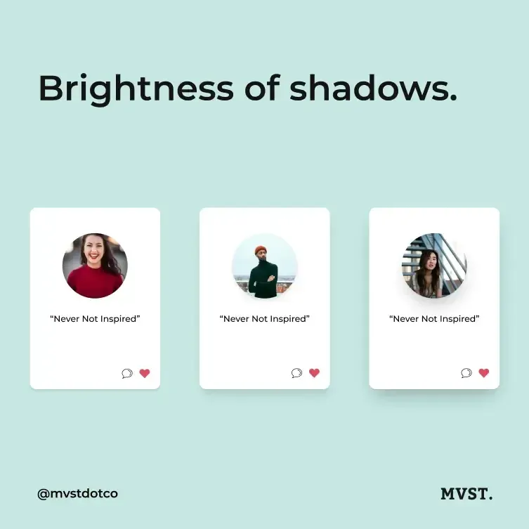 Our first tip is about shadows! Adding shadows helps to create dimension. Remember: the darker the shadow of an object, the closer it appears to be. Simple- right? A more advanced tip is to make shadows look soft. You can lower the opacity and set a higher level of blur to get that look. This technique helps to blend the shadow with the object and give the design a more cohesive look.